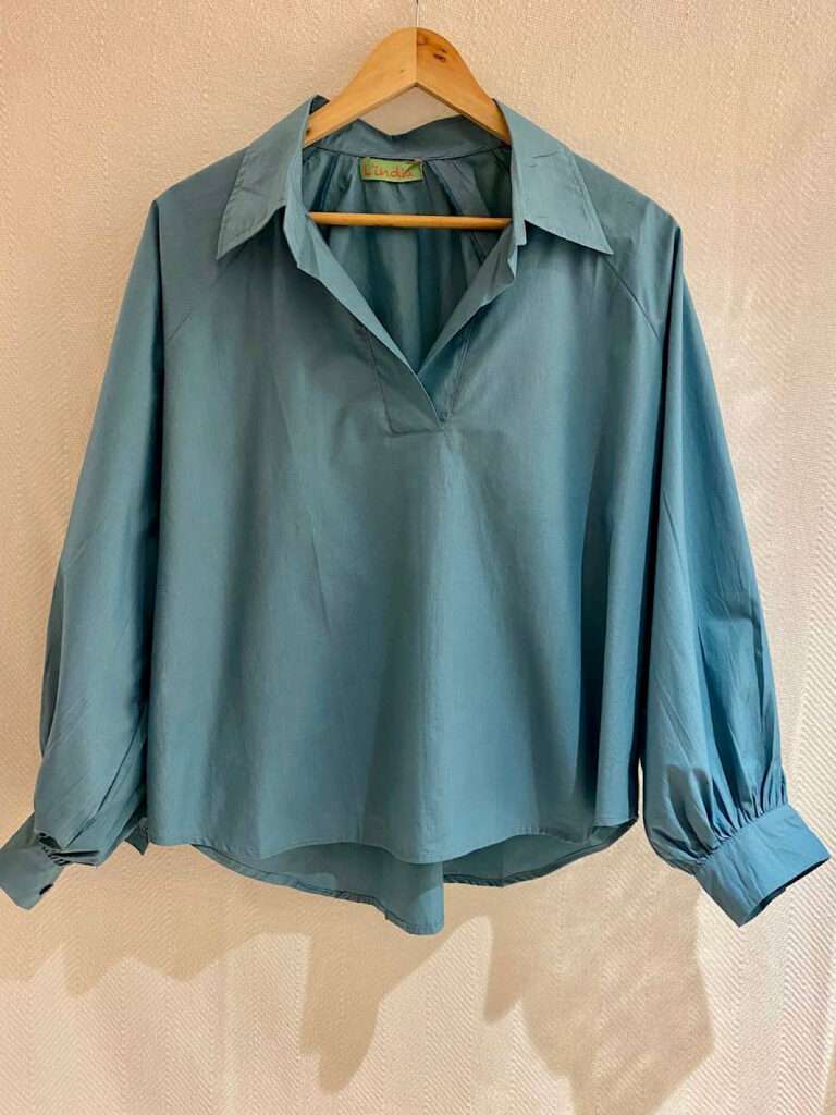 Esta camisa me gusta llamarla modelo pirata, al tener cuello camisero pero a la vez ser una camisa cerrada Y con manga farol , tiene todo el estilo y la diversion de un modelo pirata .