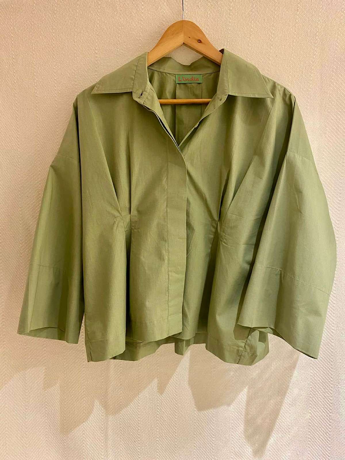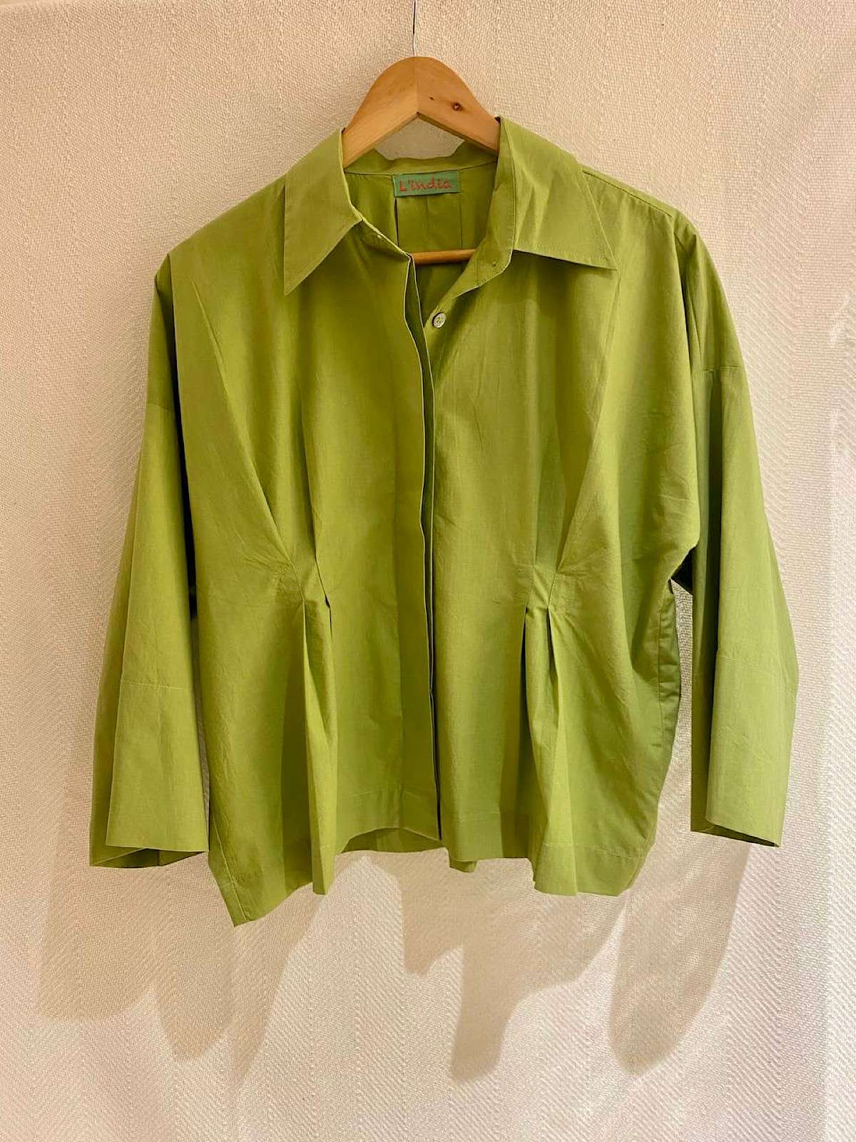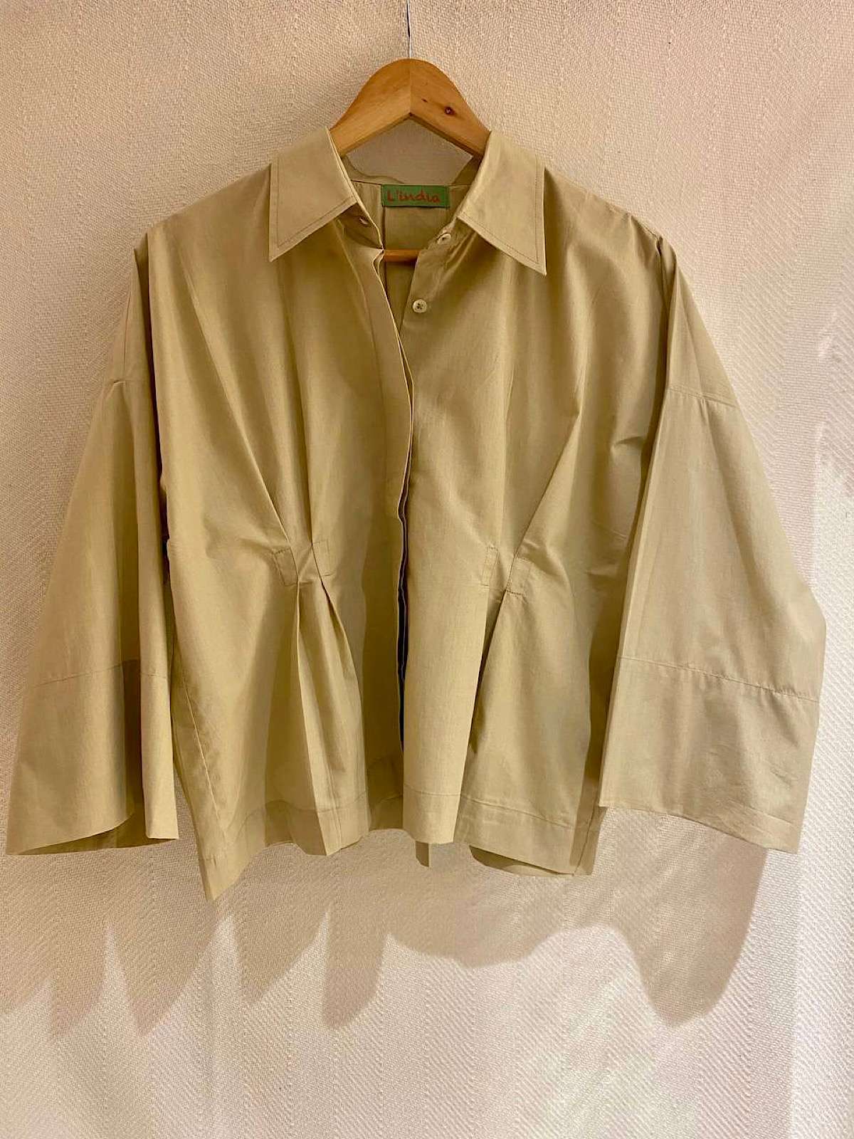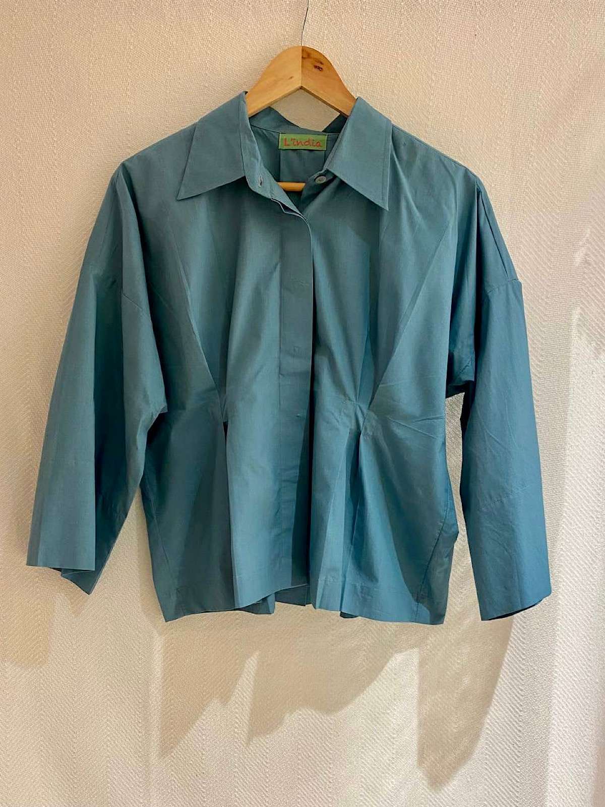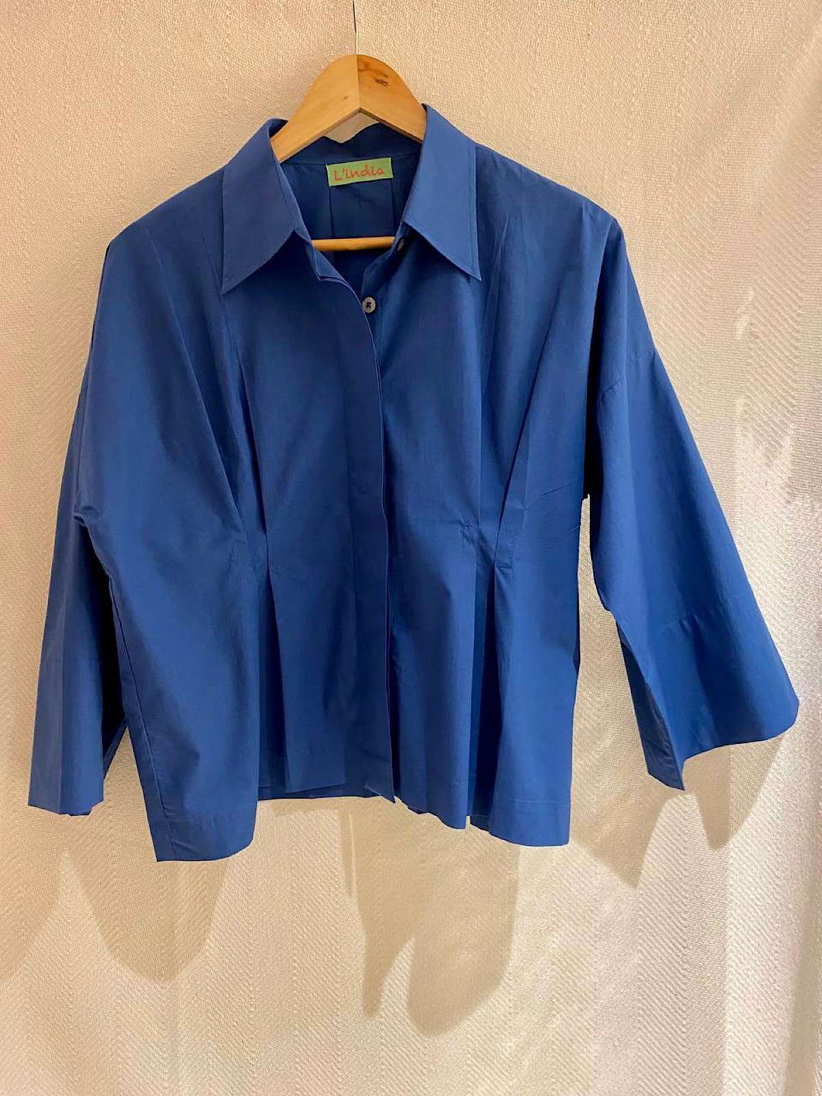 Esta es una camisa un poco mas corta, con unas pinzas que ajustan , marcan ligeramente la cintura y estilizan mucho.