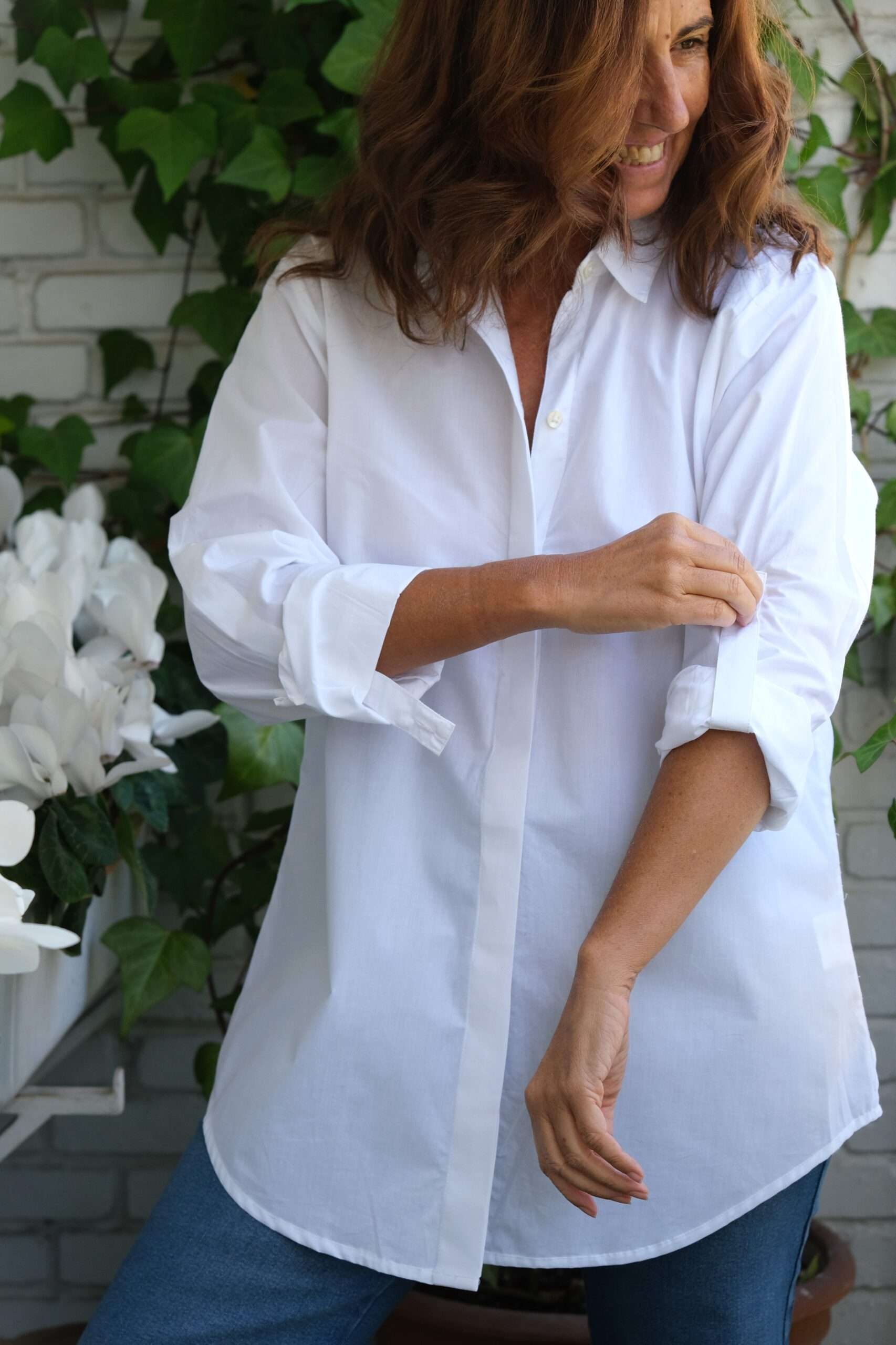 La camisa que todos queremos! con un toque más entallado que se adapta perfectamente y estiliza a quien la lleva es una de nuestras camisas más infalibles. El detalle de la manga, que se puede remangar y atar le da un toque perfecto y versátil para el día a día. Es la definición perfecta de… cuando no sabes qué ponerte, ponte una camisa de popelín, porque con ella nunca fallas.