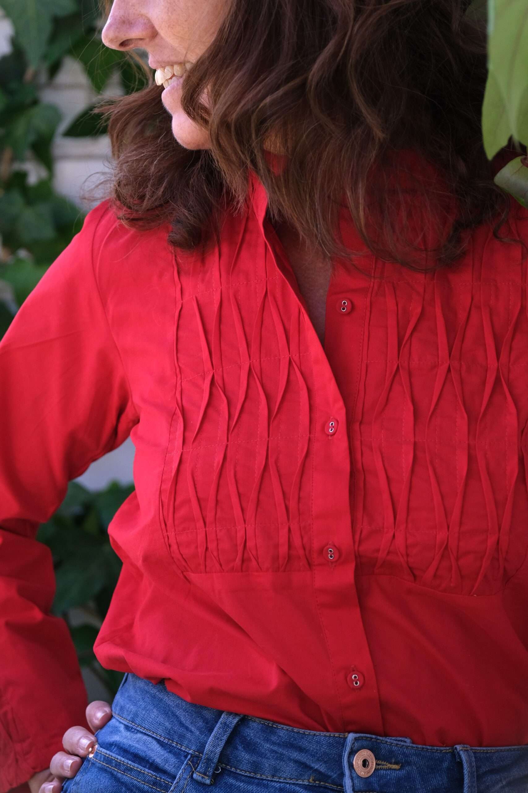 Nuestra camisa más diferente! Una prenda entallada de algodón popelín que se adapta al cuerpo y que destaca por ese detalle especial de ondas que se combina en la pechera y en las mangas. Habla por si sola!
