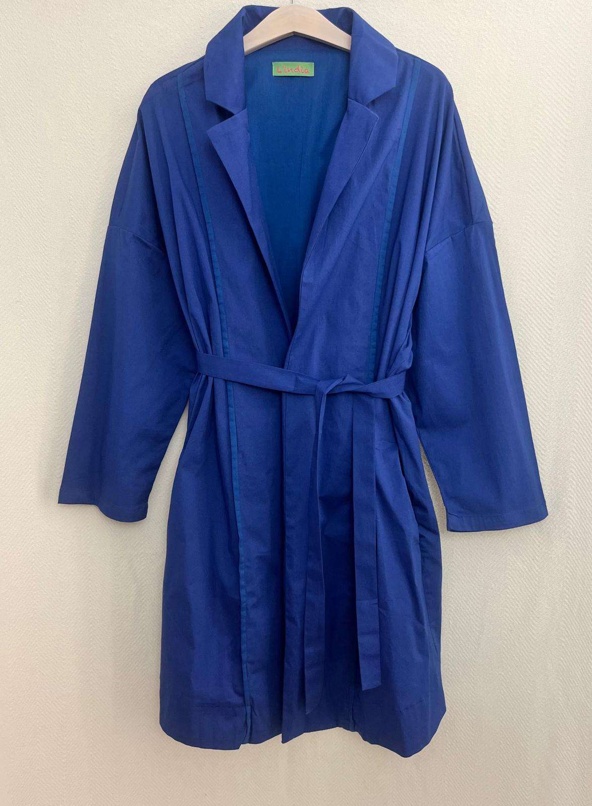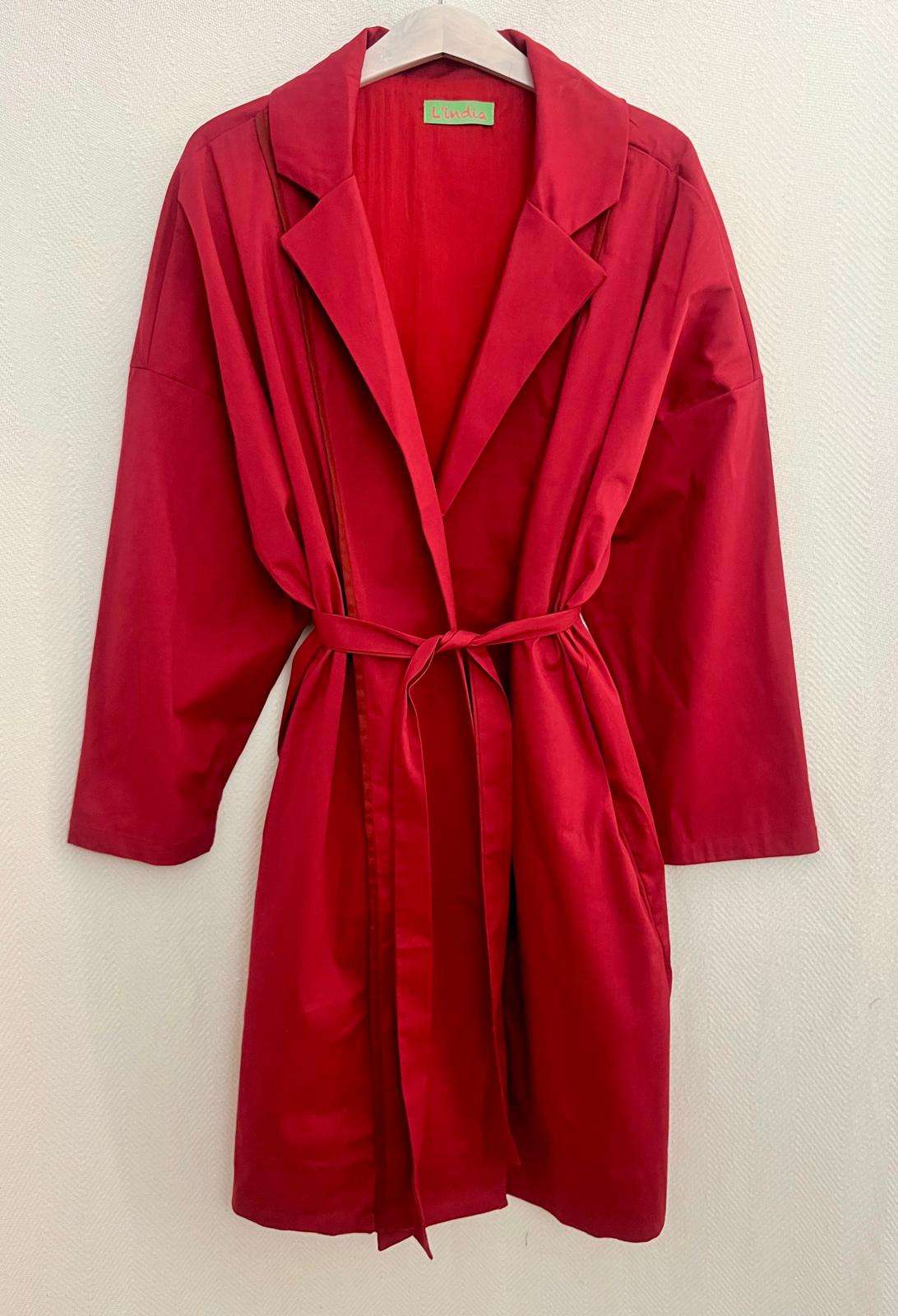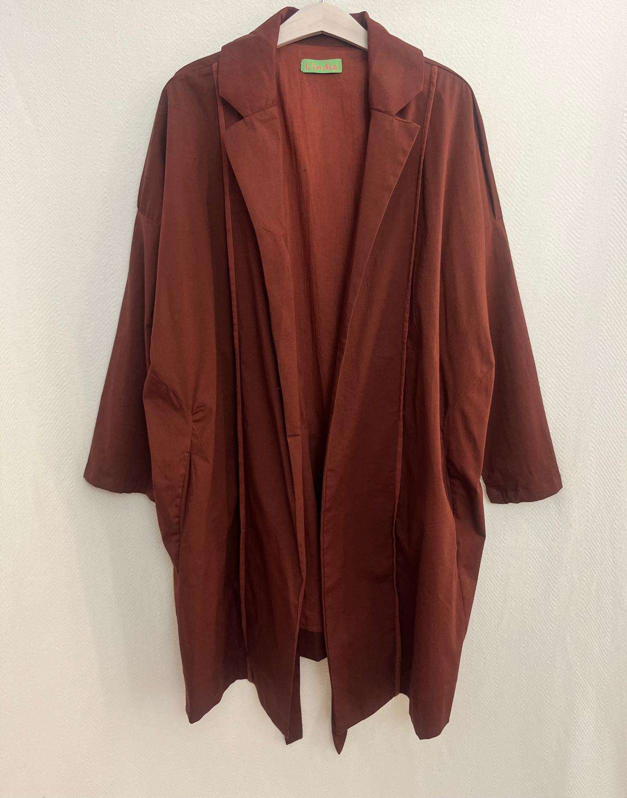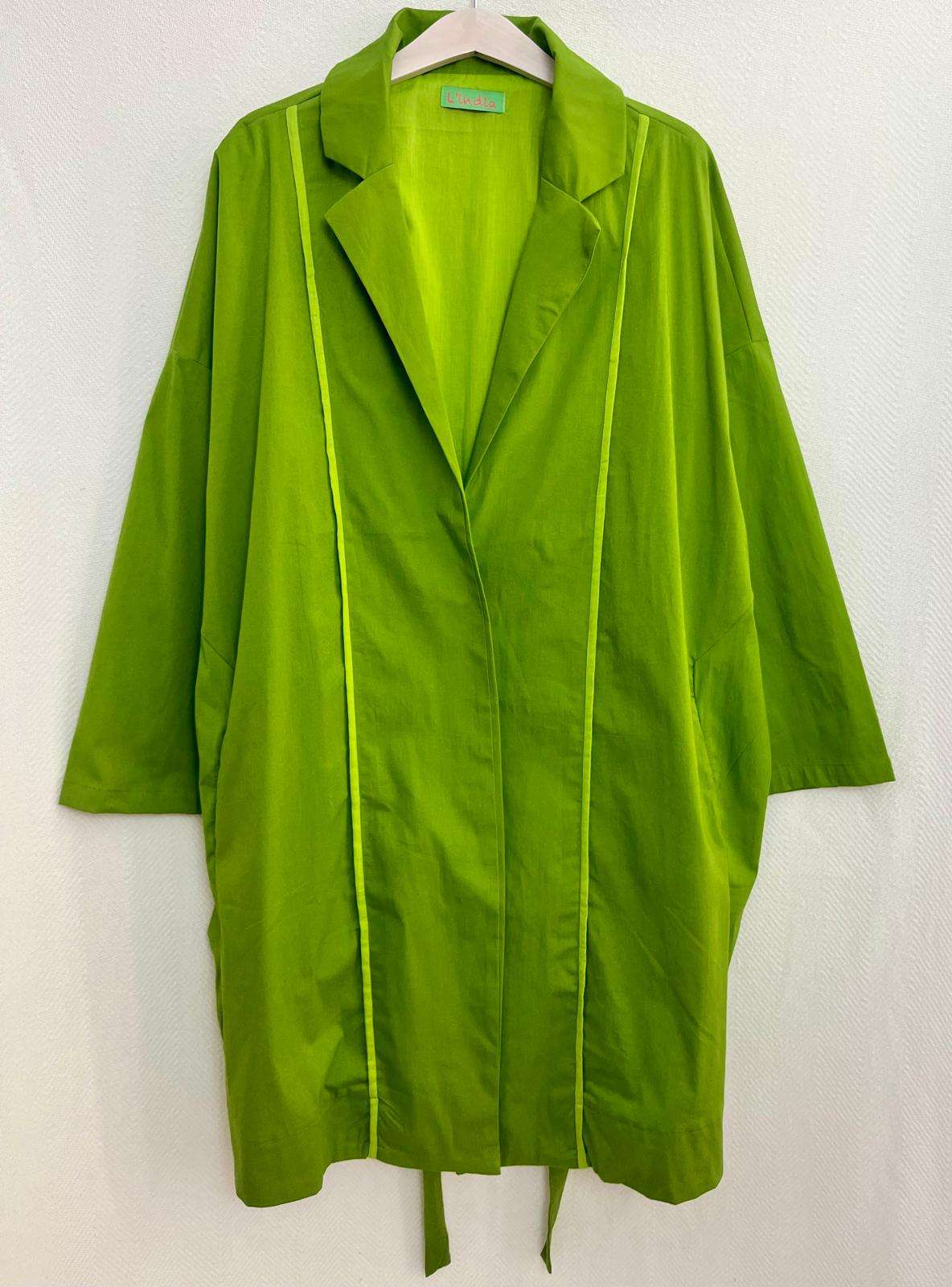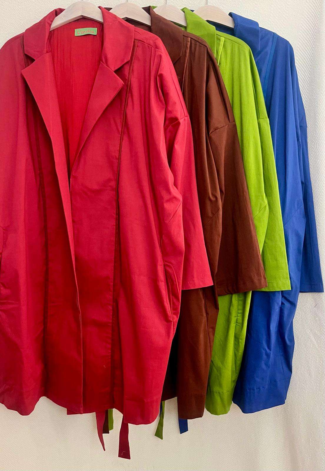 Chaqueta de algodón y lycra super cómodo y versátil con un corte estilo gabardina que queda ideal , prenda floja con cinturón para adaptarlo .