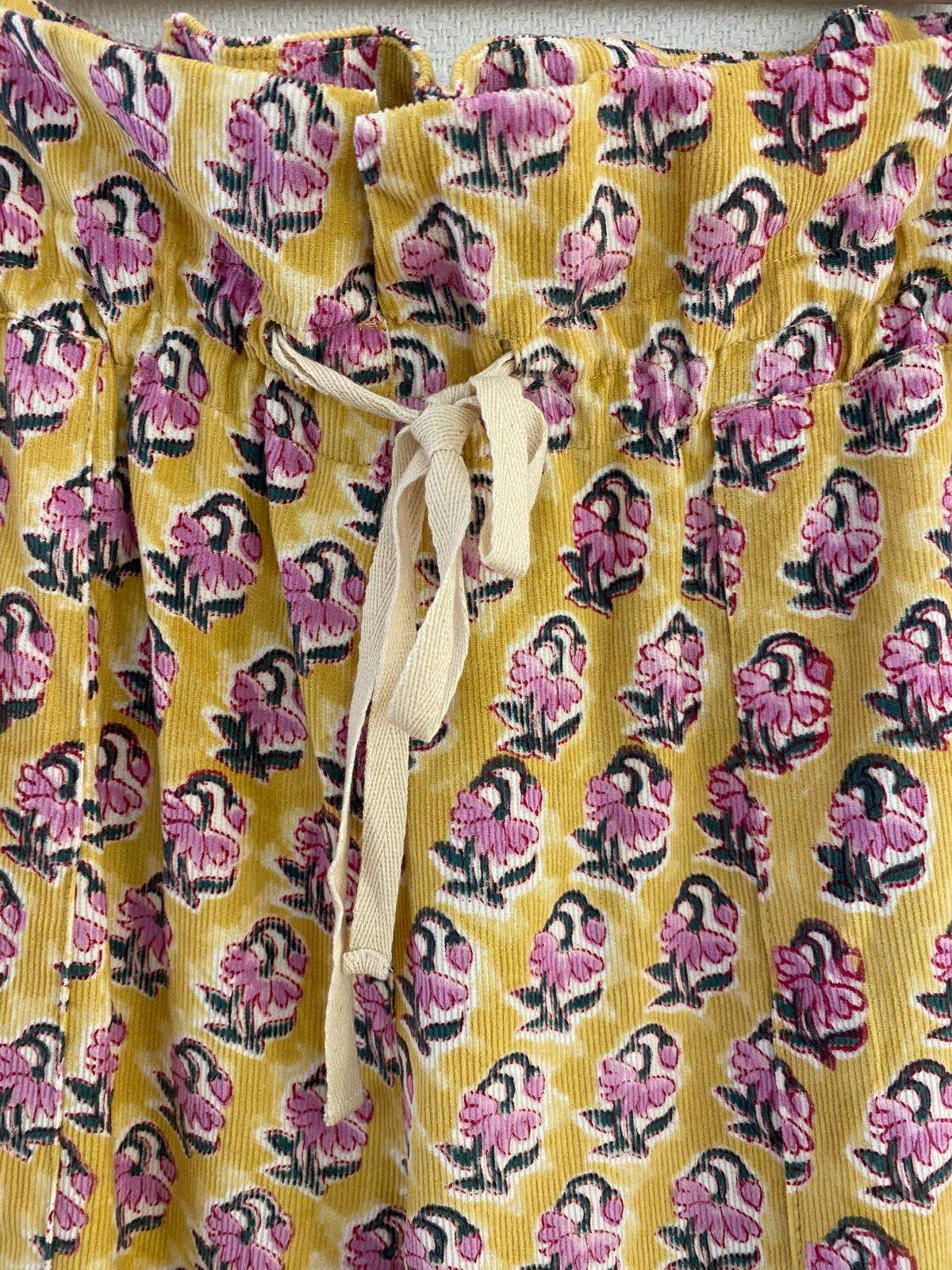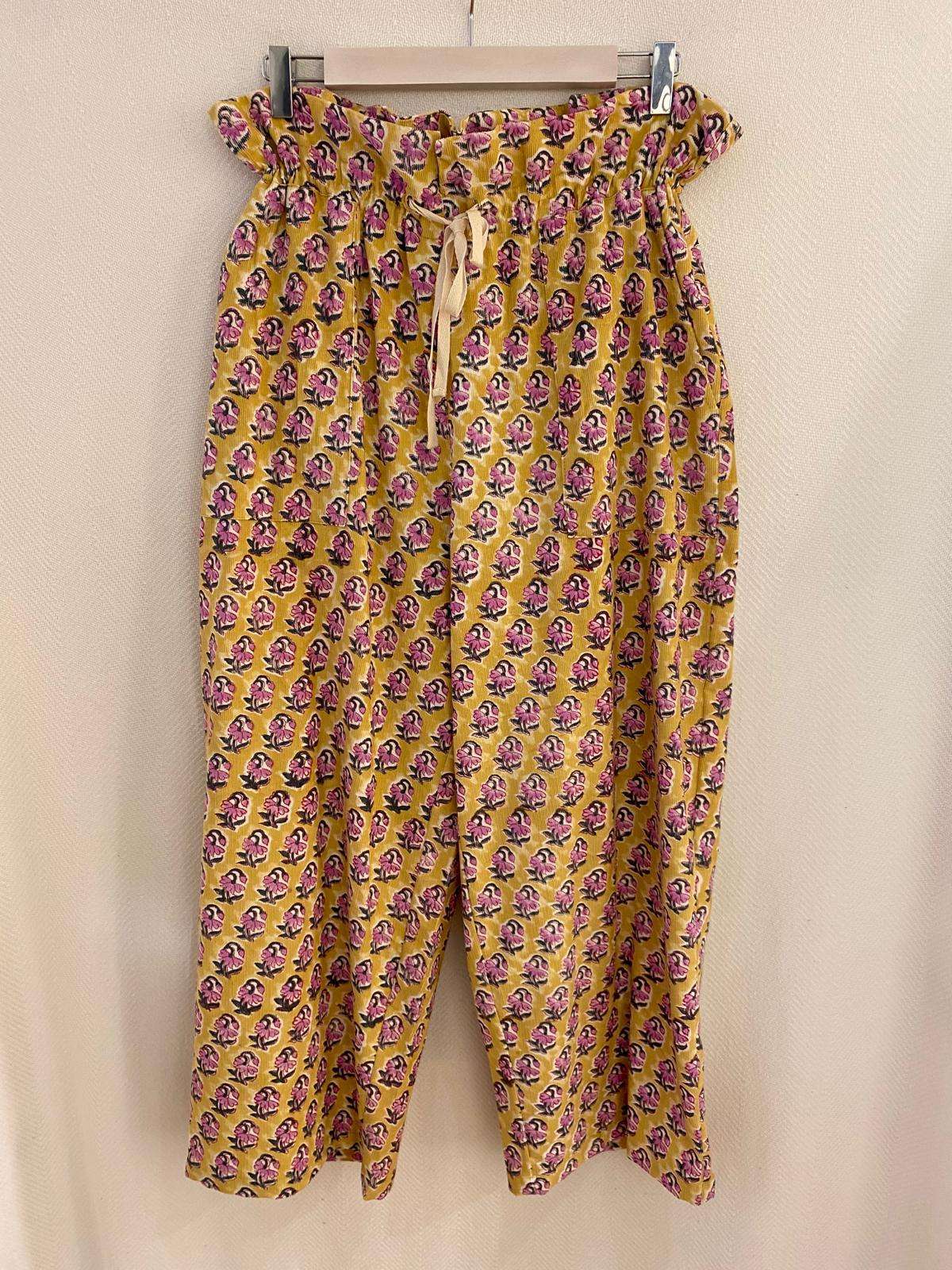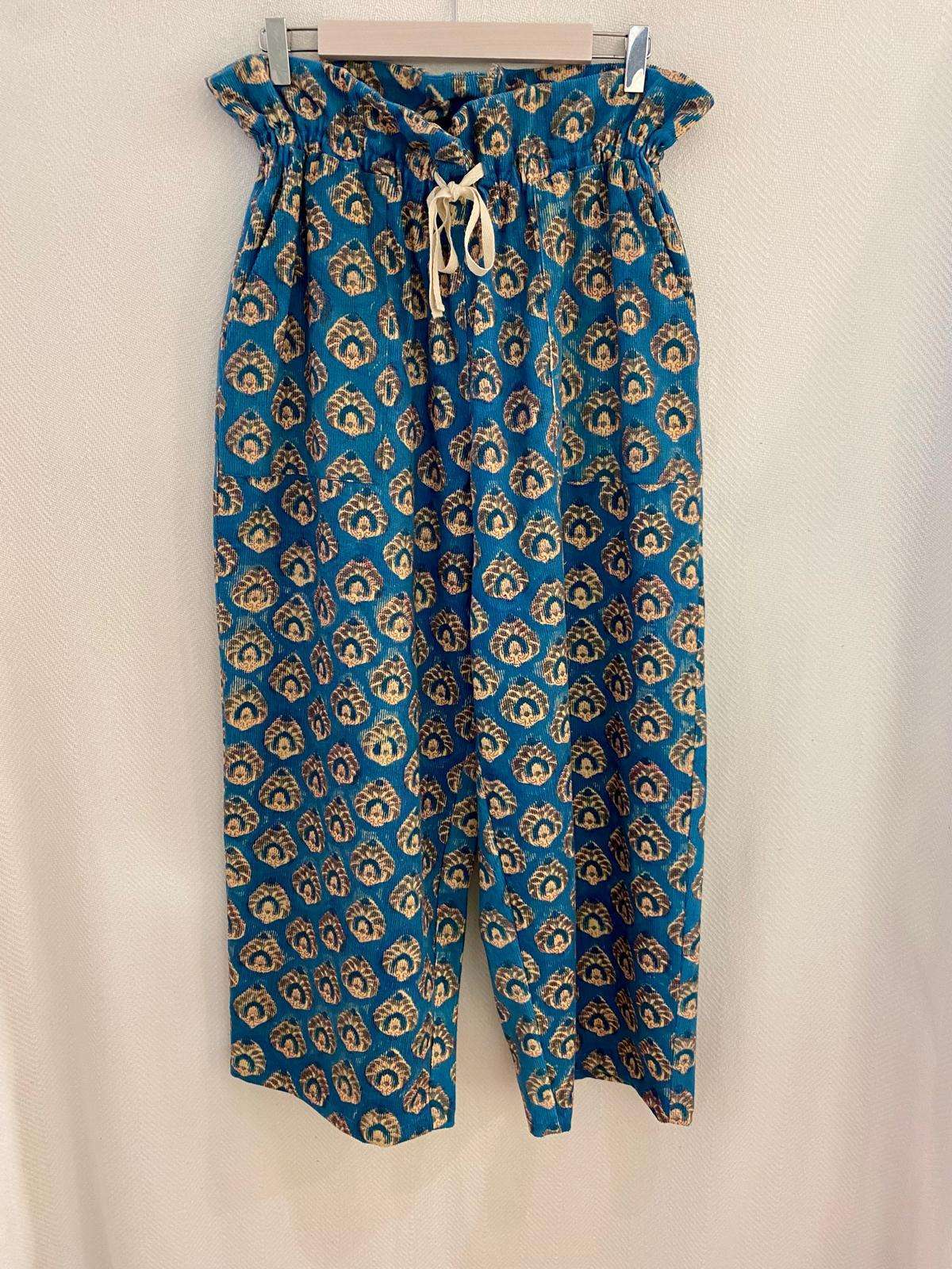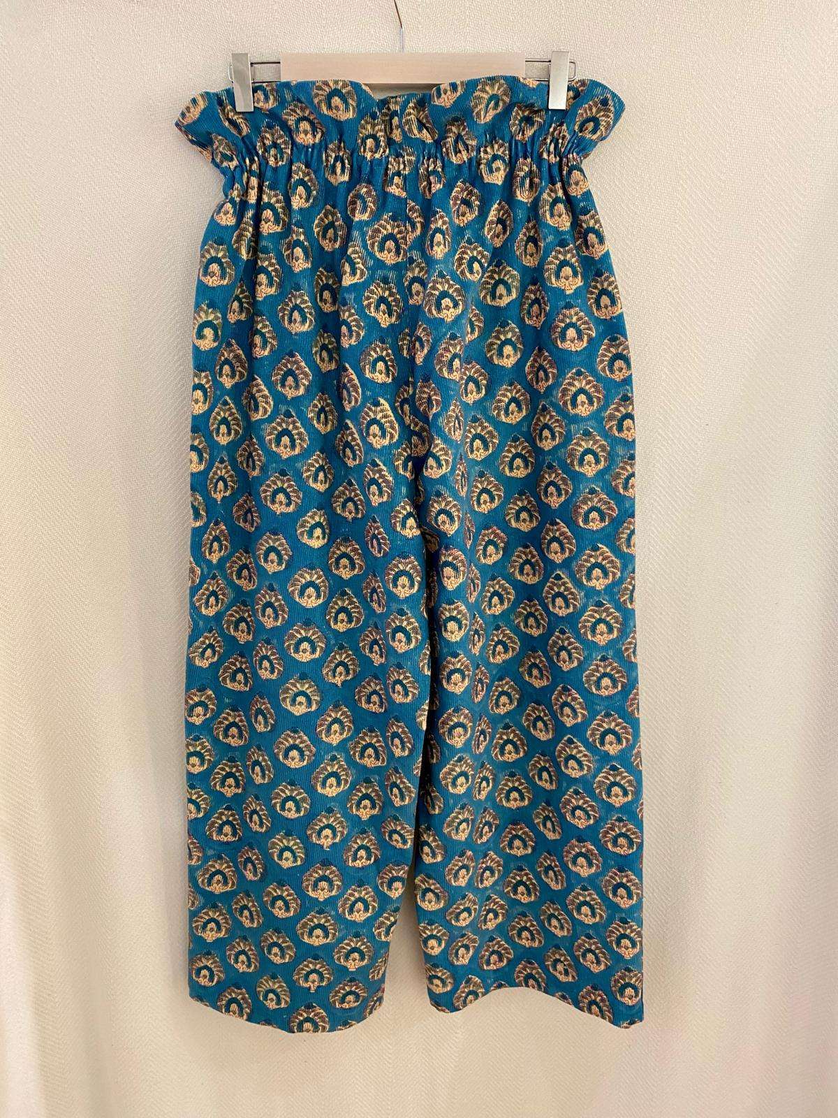 Pantalón de micropana con divertidos estampados y con detalle frunce en la cintura. Bolsillos en los laterales .