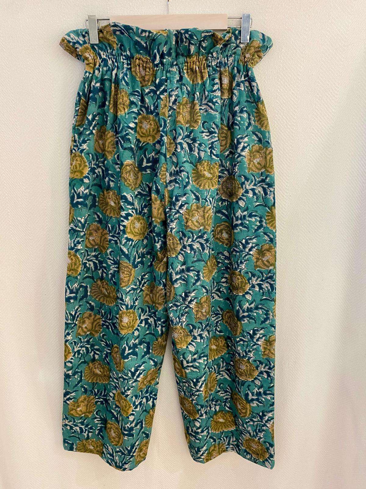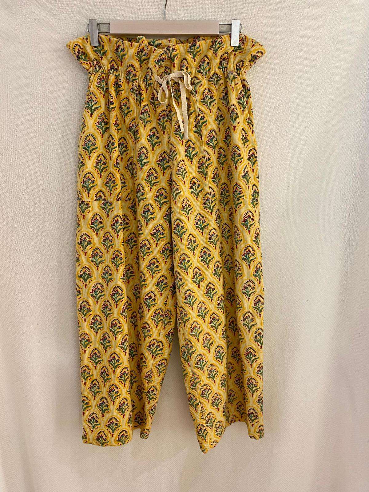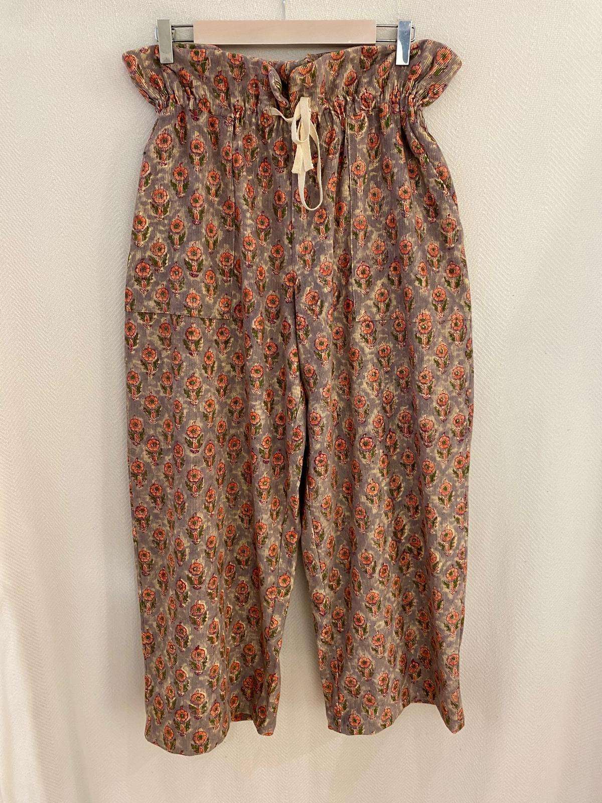 Pantalón de micropana con divertidos estampados y con detalle frunce en la cintura. Bolsillos en los laterales .