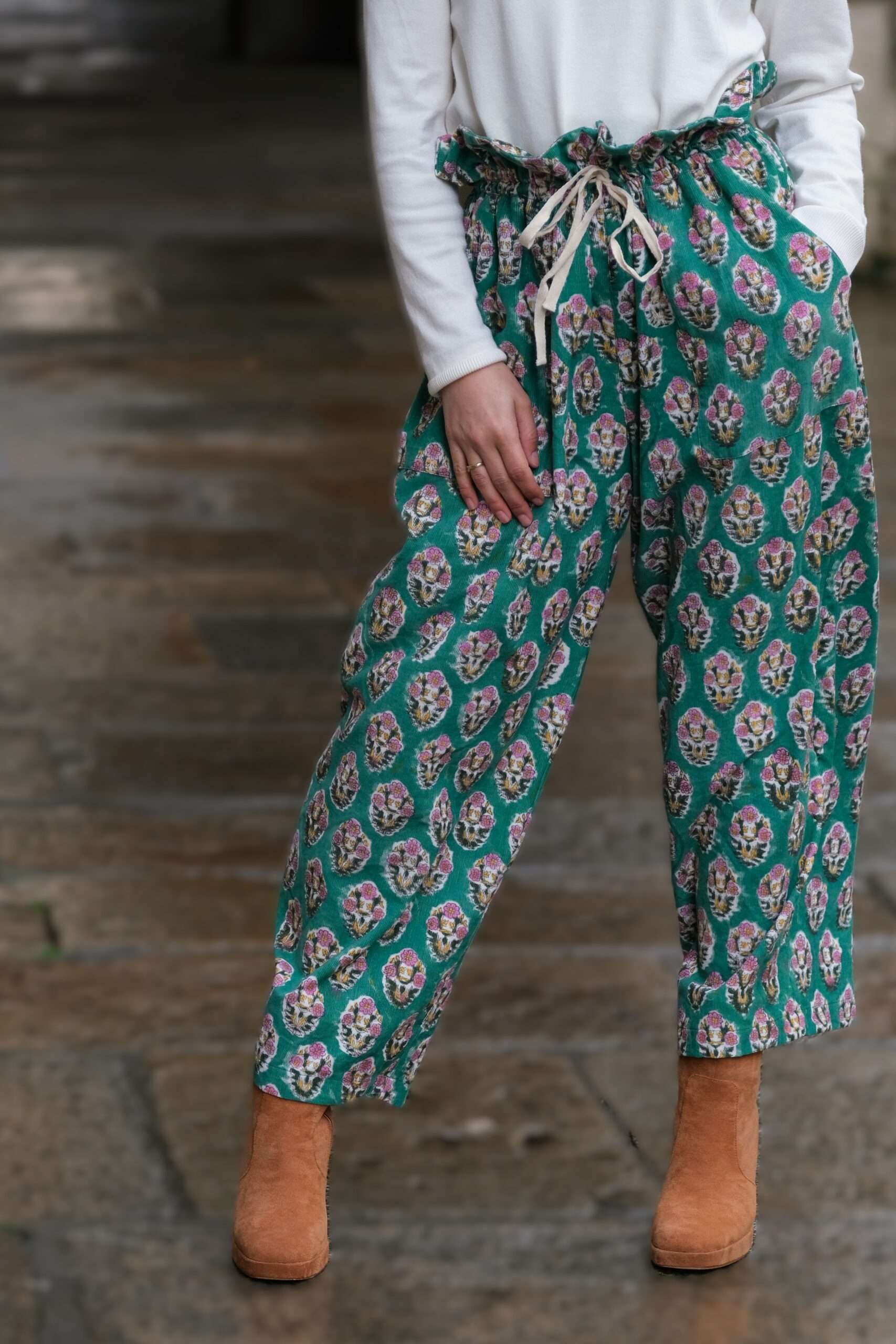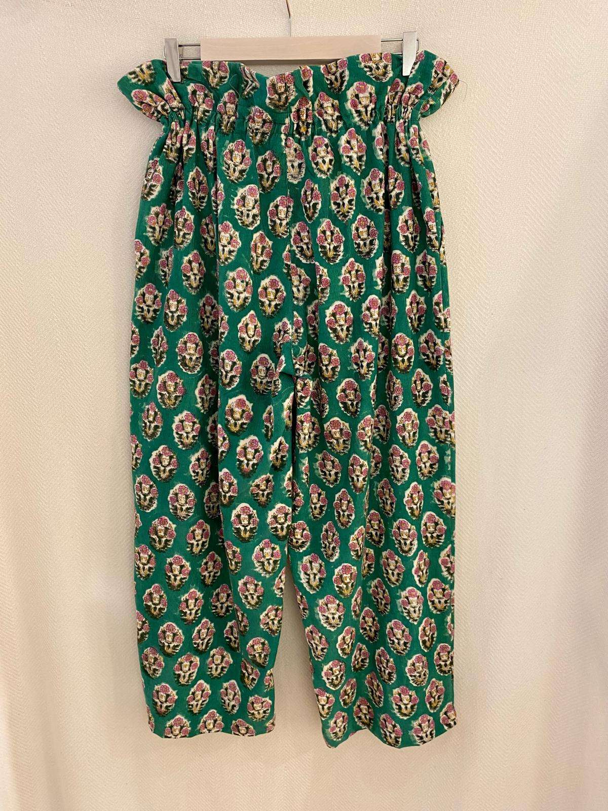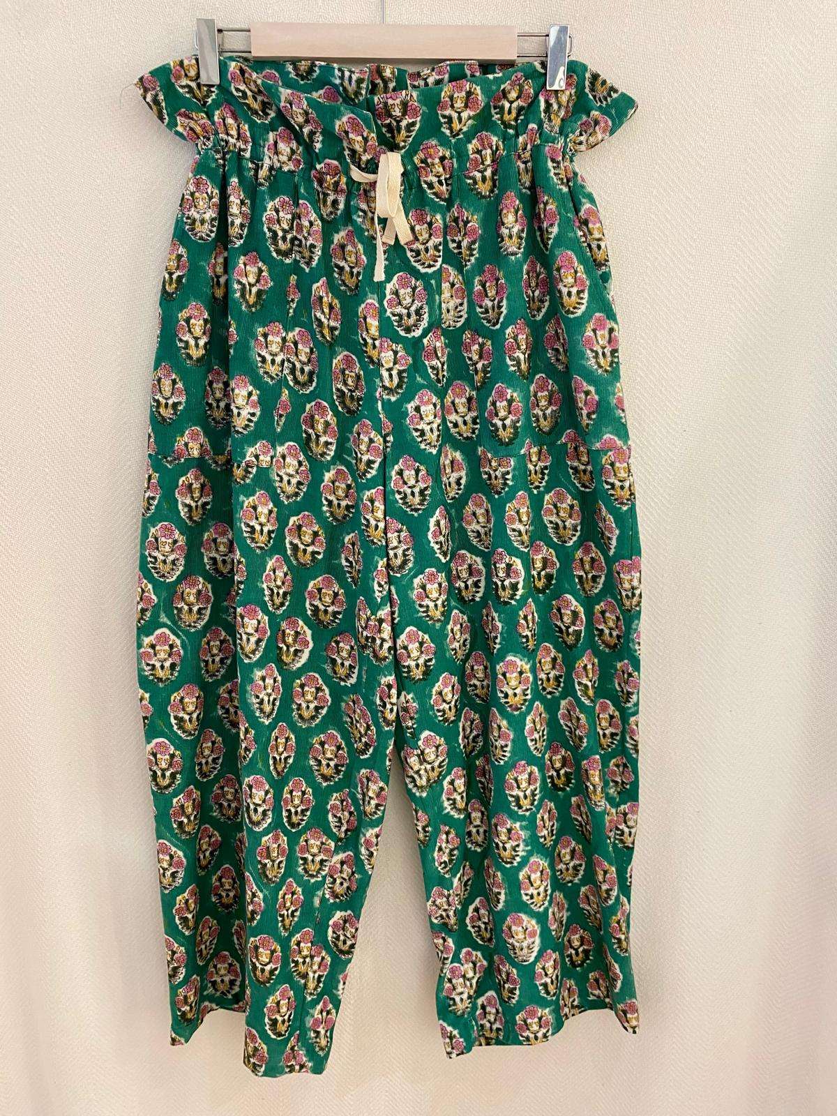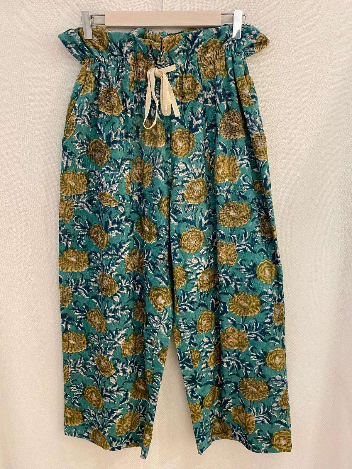 Pantalón de micropana con divertidos estampados y con detalle frunce en la cintura. Bolsillos en los laterales .