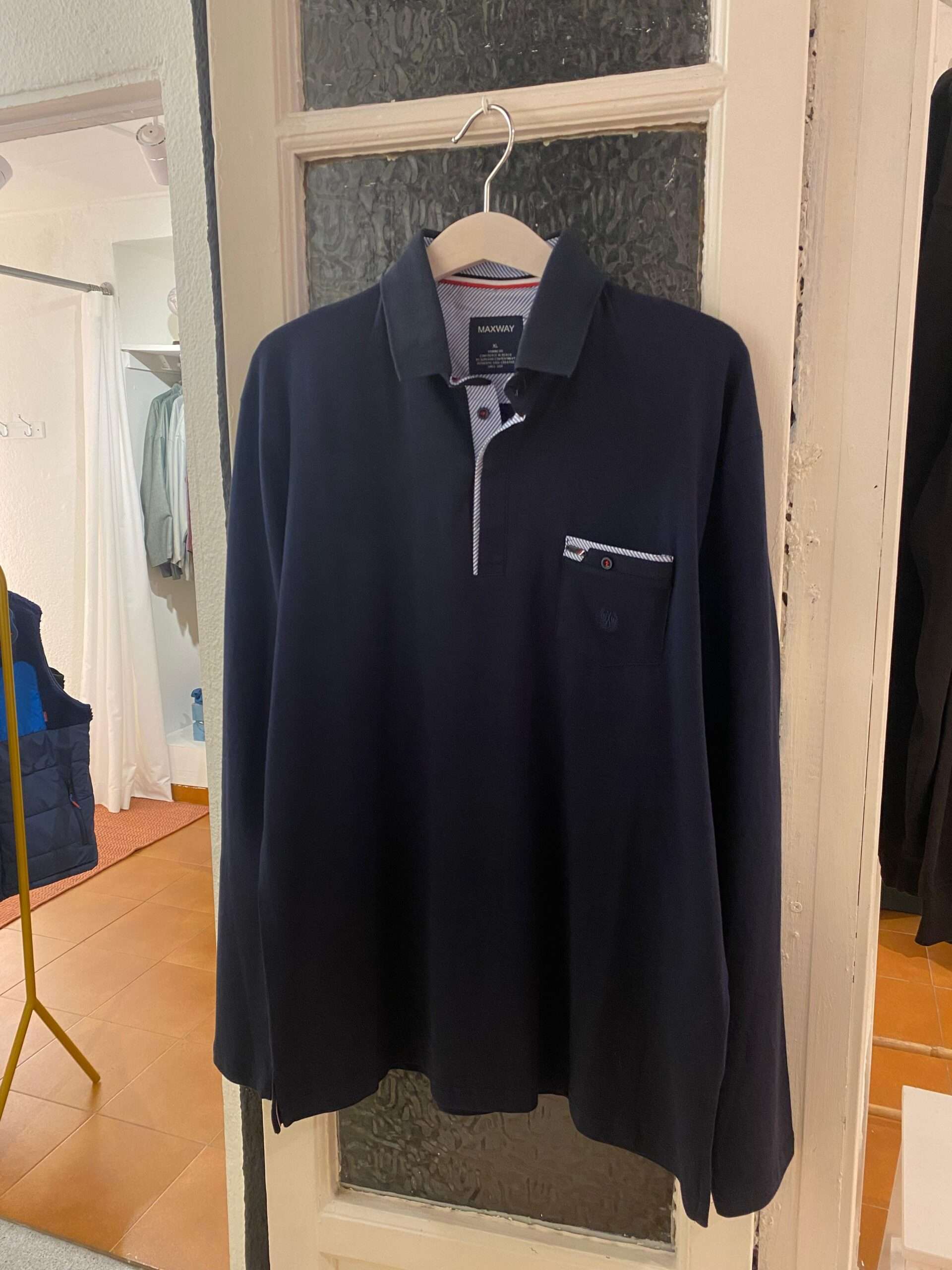 Corte recto en este polo de tejido fino , con remates en bolsillo y botonera.