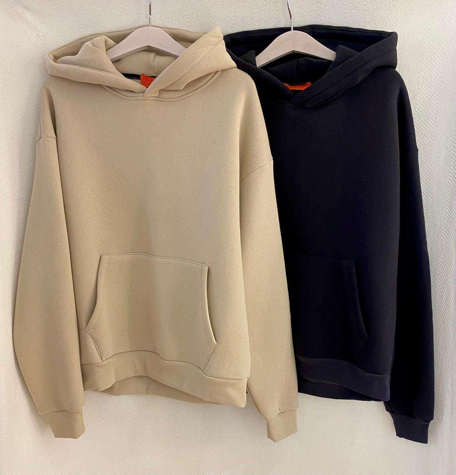 Sudadera básica con capucha y bolsillo canguro. Interior suave y cálido. Disponible en dos tonos.
