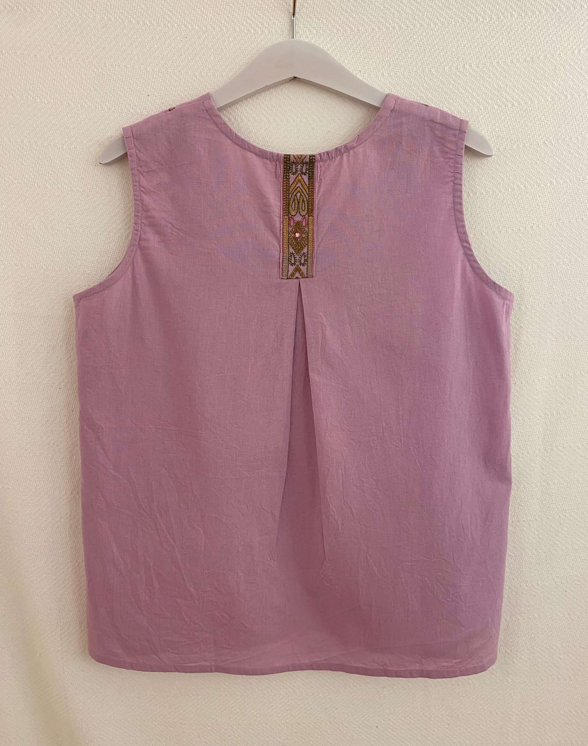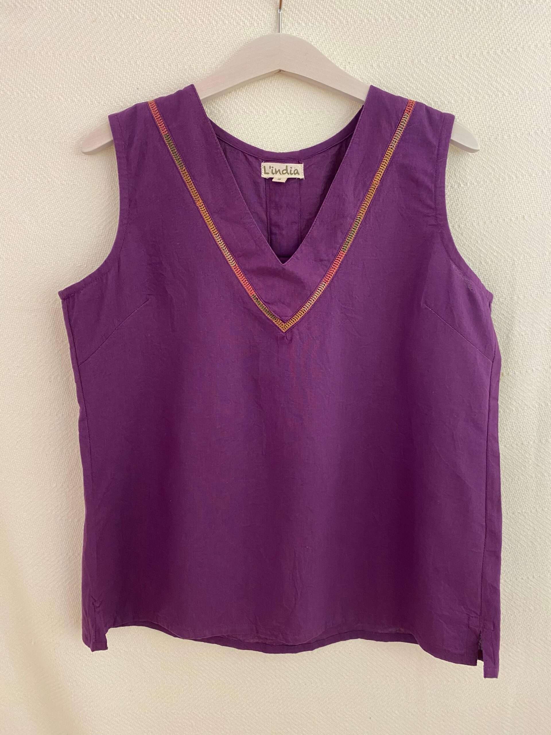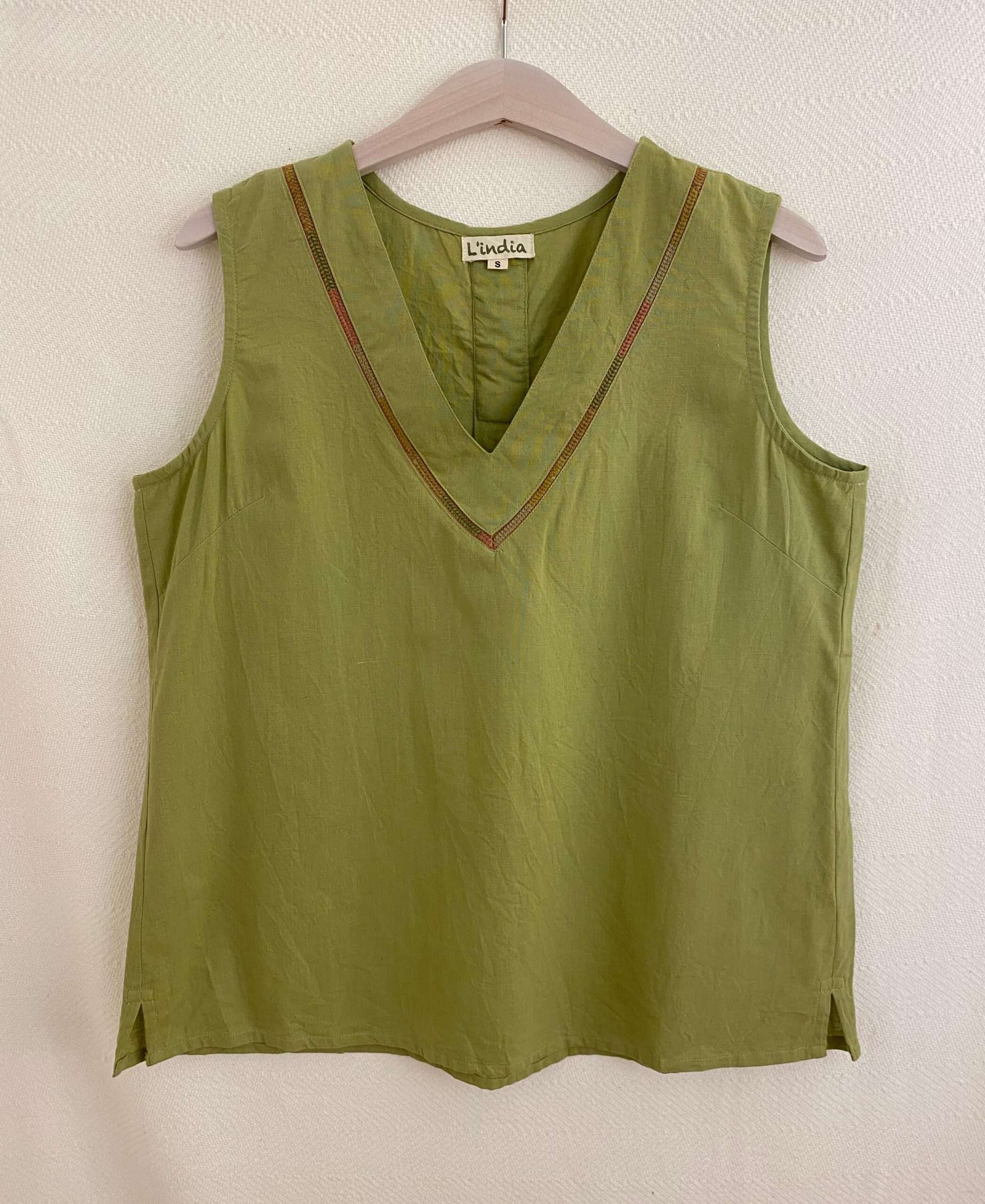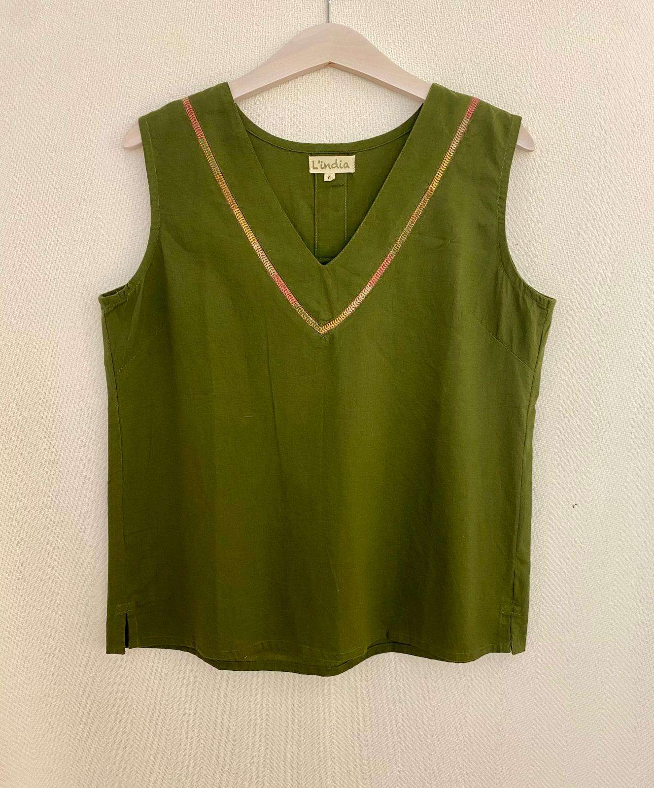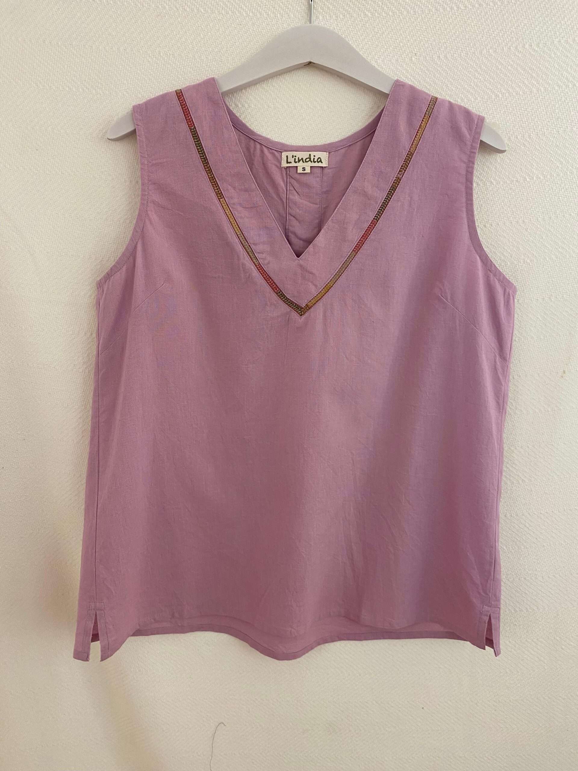 Top sisas cuello pico con detalle bordado en el cuello. Disponible en tres colores muy combinables.