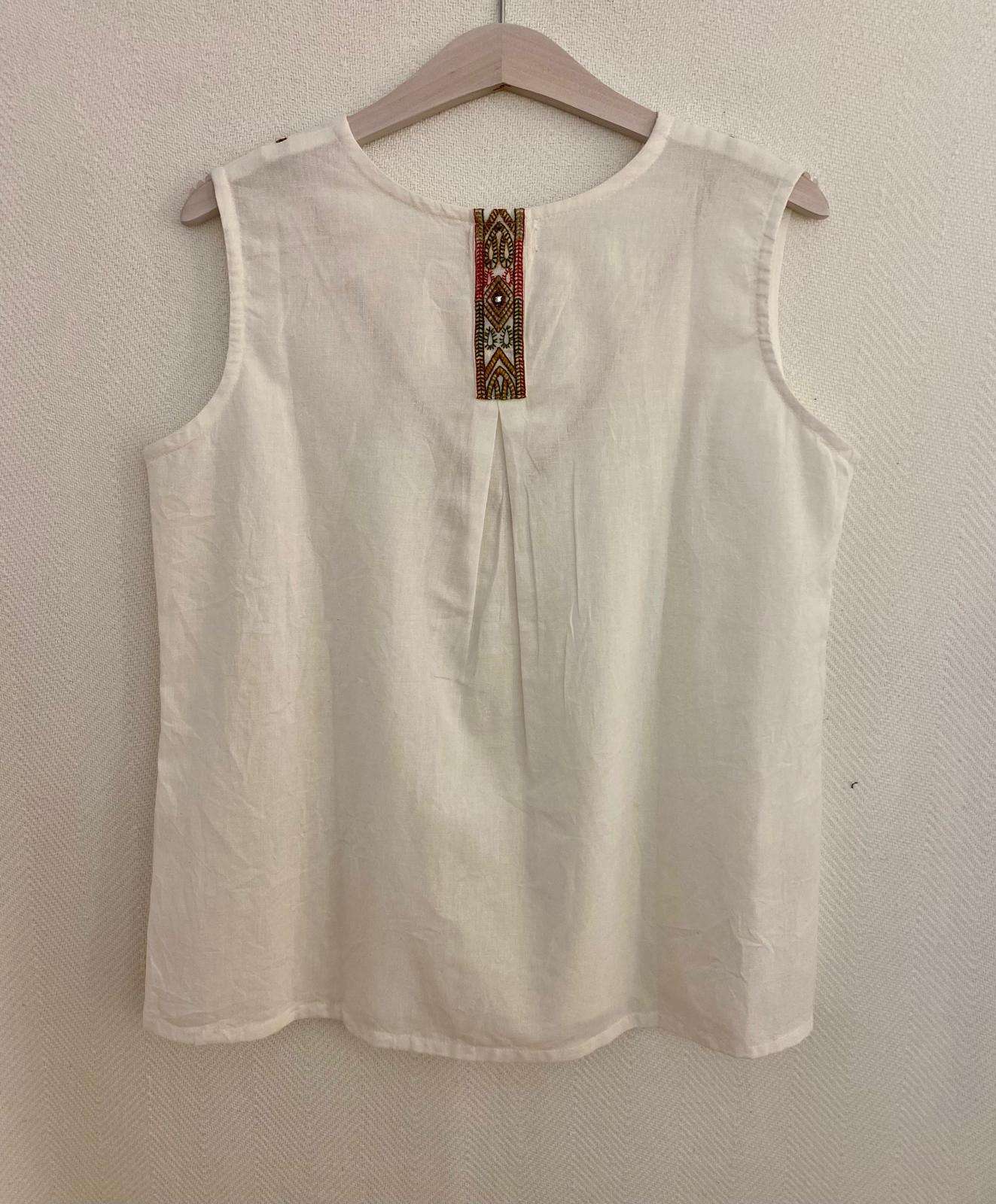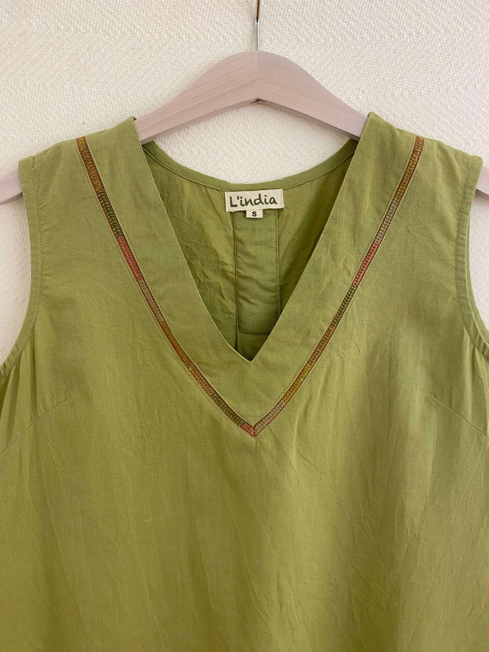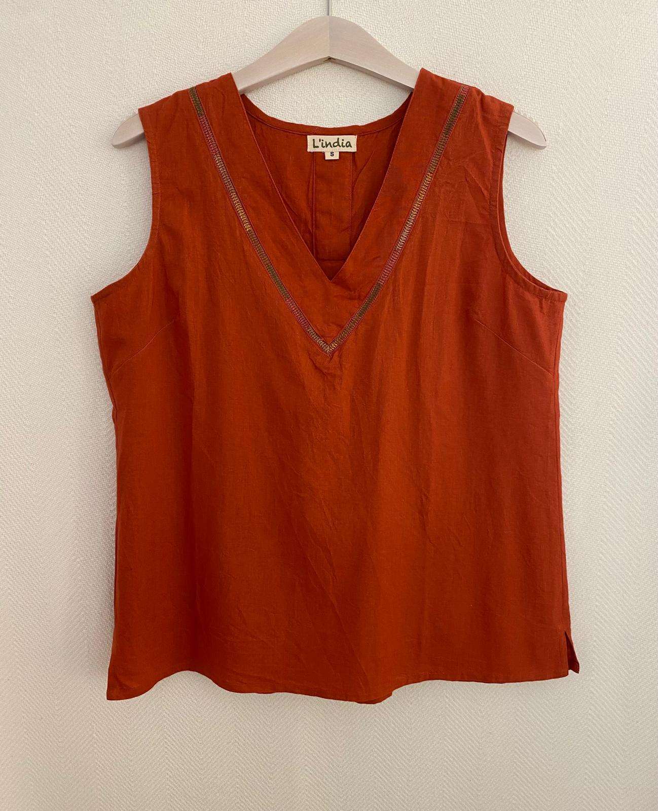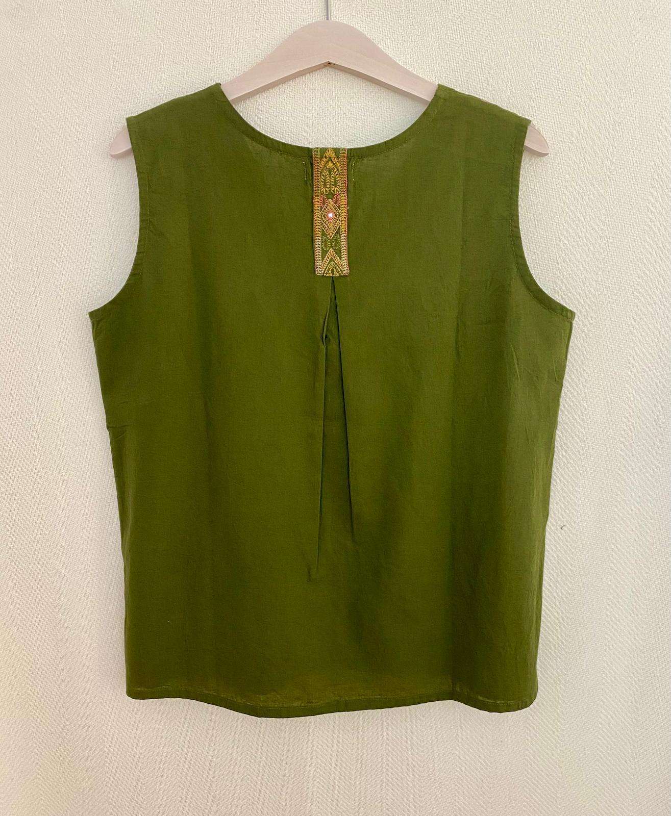 Top sisas cuello pico con detalle bordado en el cuello. Disponible en tres colores muy combinables.
