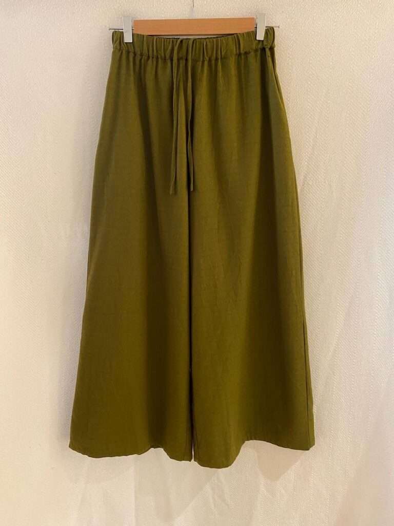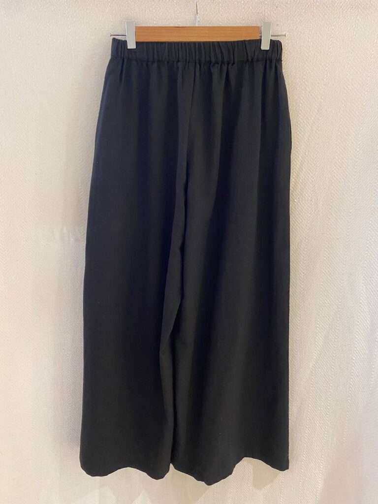 Corte limpio, un modelo ancho pero que estiliza , con goma en la cintura sienta genial a cualquier talla , un menos es mas